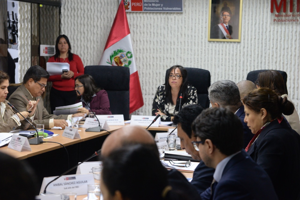 Este órgano, está conformado por el Ministerio de Justicia y Derechos Humanos, Poder Judicial, Defensoría del Pueblo, Ministerio del Interior, Educación, Salud, Desarrollo e Inclusión Social, Trabajo y Promoción del Empleo, Cultura, Defensa, Ministerio Público y el Ministerio de la Mujer, quien la preside.