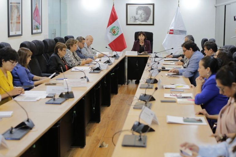 La sesión se realizó en el Ministerio de la mujer y Poblaciones Vulnerables, y estuvo liderado por la titular del sector, Nancy Tolentino, quien al iniciar pidió un minuto de silencio por todas las mujeres y niñas que han sido víctimas de violencia sexual y violencia feminicida en nuestro país.