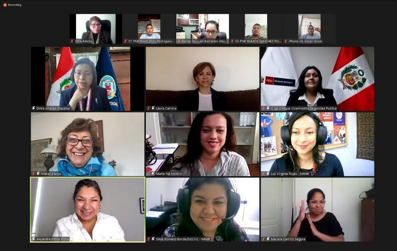 Este evento virtual contó con la participación de la Viceministra de Seguridad Pública – Olga Luz Chagua Timoteo; la Fiscal Suprema Provisional y Representante del Ministerio Público ante la Comisión de Alto Nivel de la Ley N°30364 – María Sokolich Alva; la directora general de la Dirección contra la violencia de género del MIMP – Silvia Romero Borda y la directora general de la Dirección General de Defensa Pública y Acceso a la Justicia del Ministerio de Justicia y Derechos Humanos – Zoila Isabel Macavila Román.