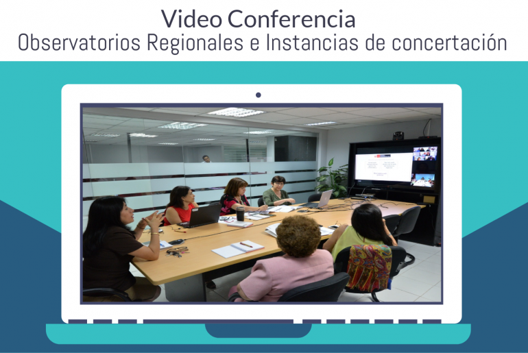 El Ministerio de la Mujer y Poblaciones Vulnerables, realizó la vídeo conferencia “Observatorios regionales e instancias de concertación” dirigida a funcionarios de gobiernos regionales, lo que constituye la primera reunión de trabajo con las regiones del país. La reunión tuvo como objetivo informar y orientar acerca de las Instancias Regionales de Concertación y una de las tareas que tiene esta instancia como es la creación de Observatorios Regionales de la Violencia contra las Mujeres e Integrantes del Grupo Familiar.